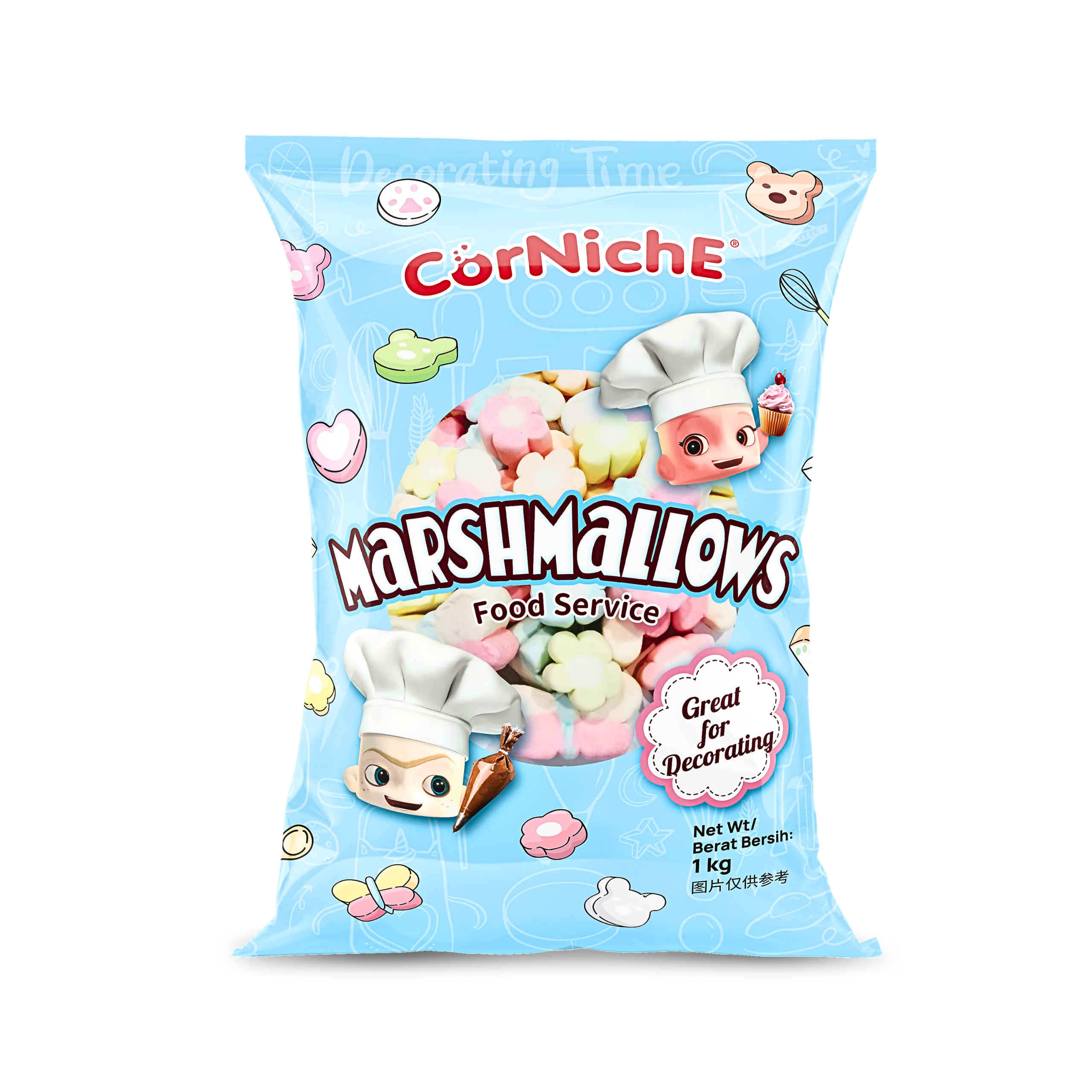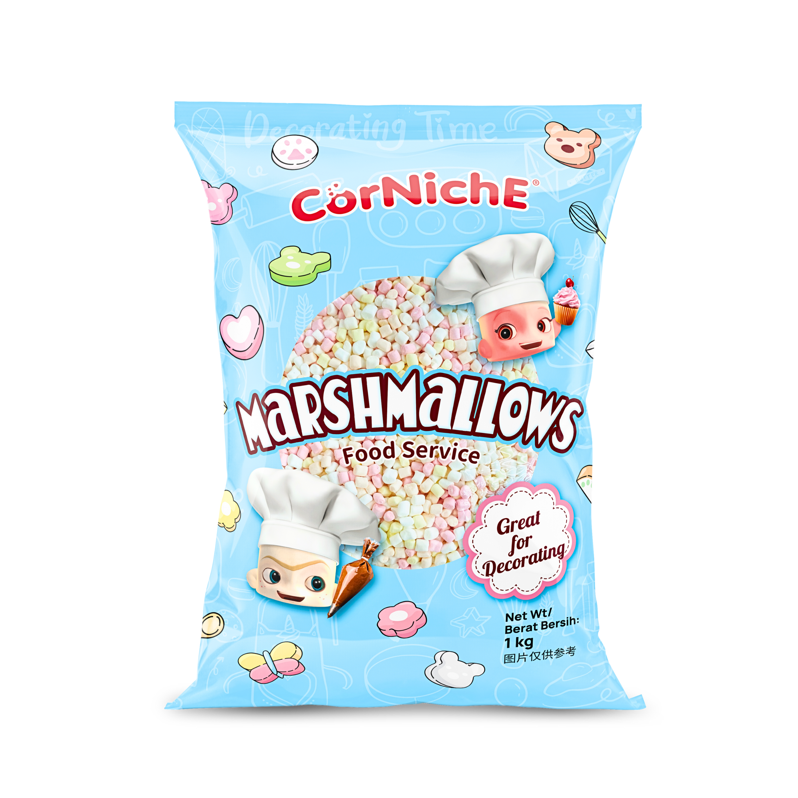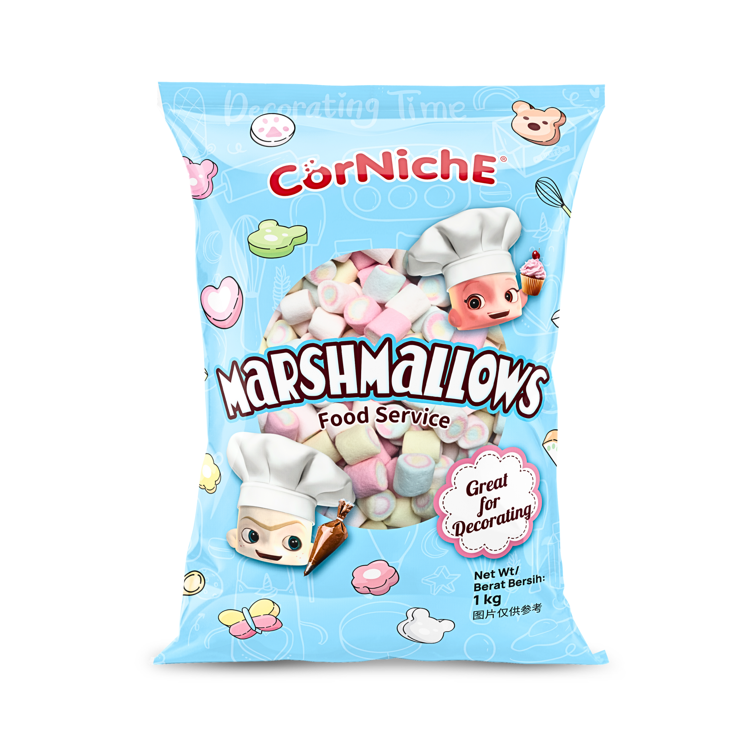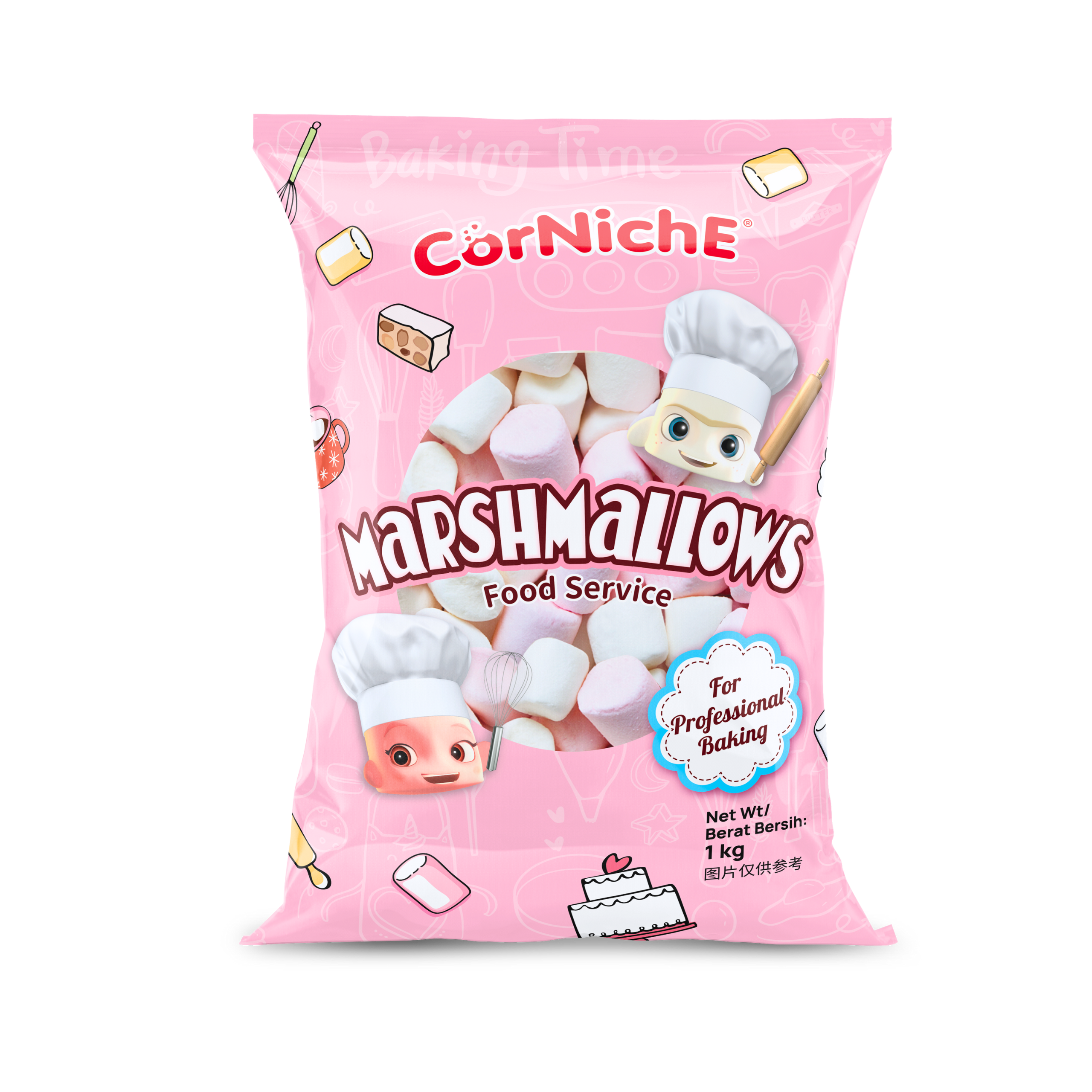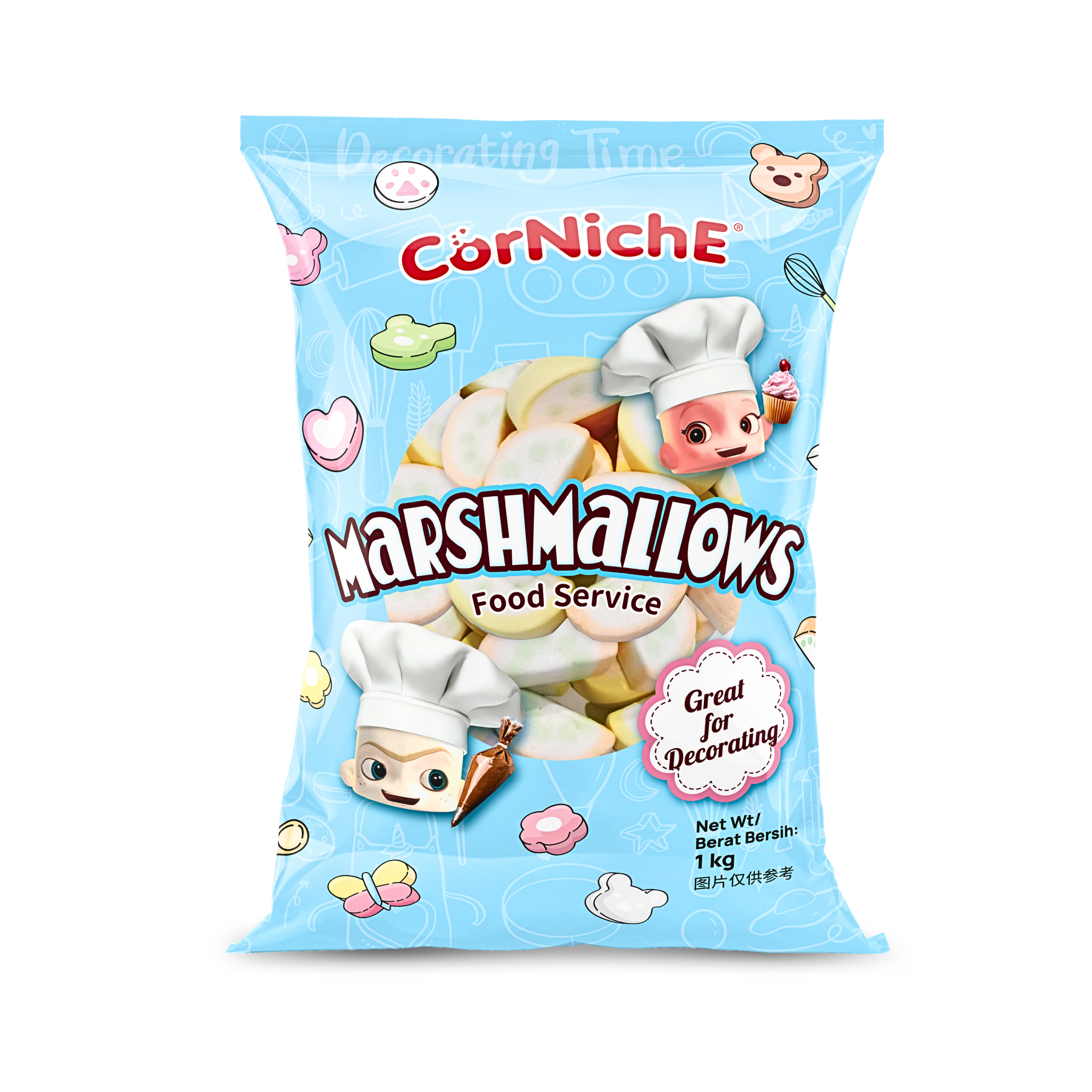 CorNichE marshmallows come in a variety of pack sizes and fun flavors—Vanilla, Chocolate, Mango, Strawberry, Apple, and even jelly-filled! Perfect for all ages, occasions, and snacking moments.