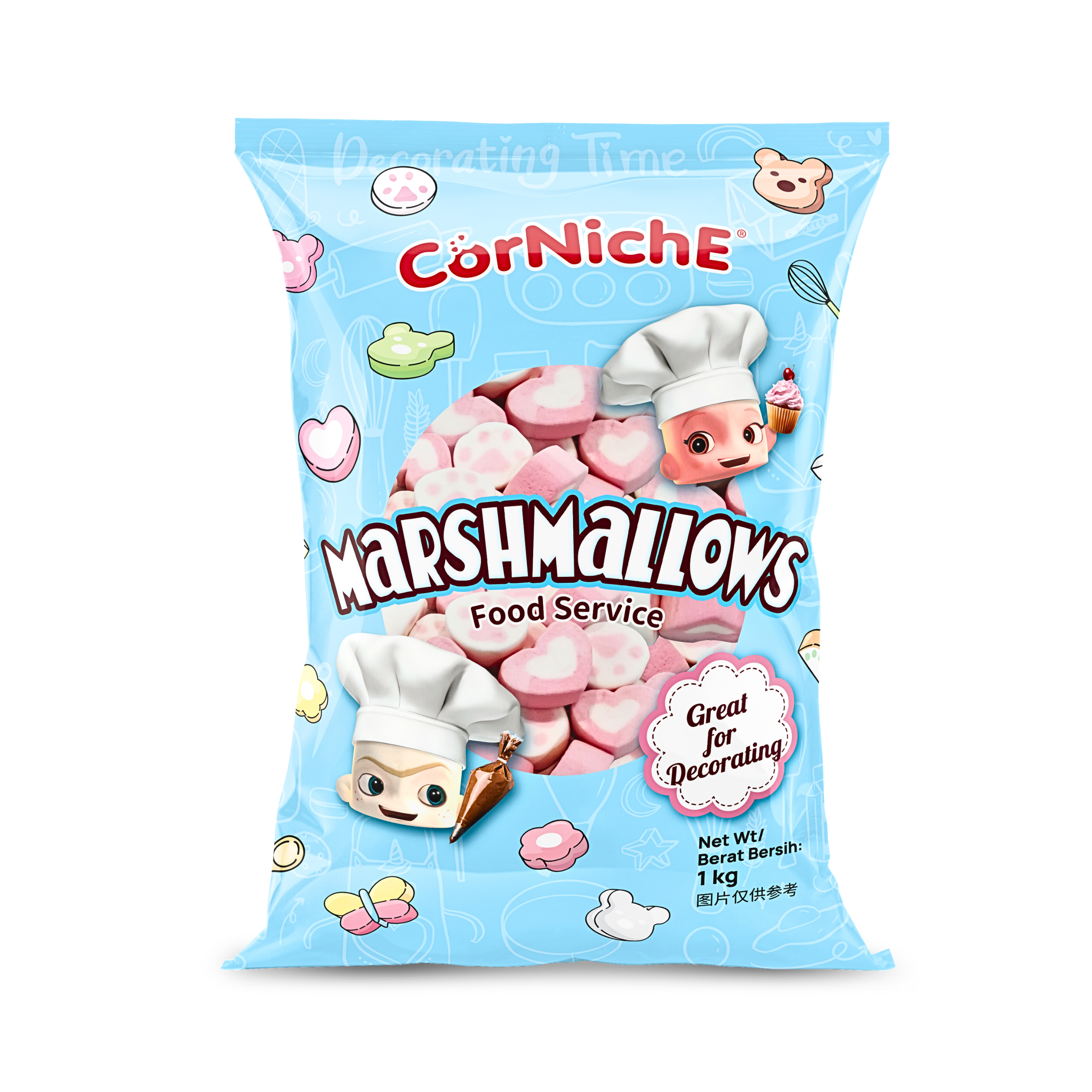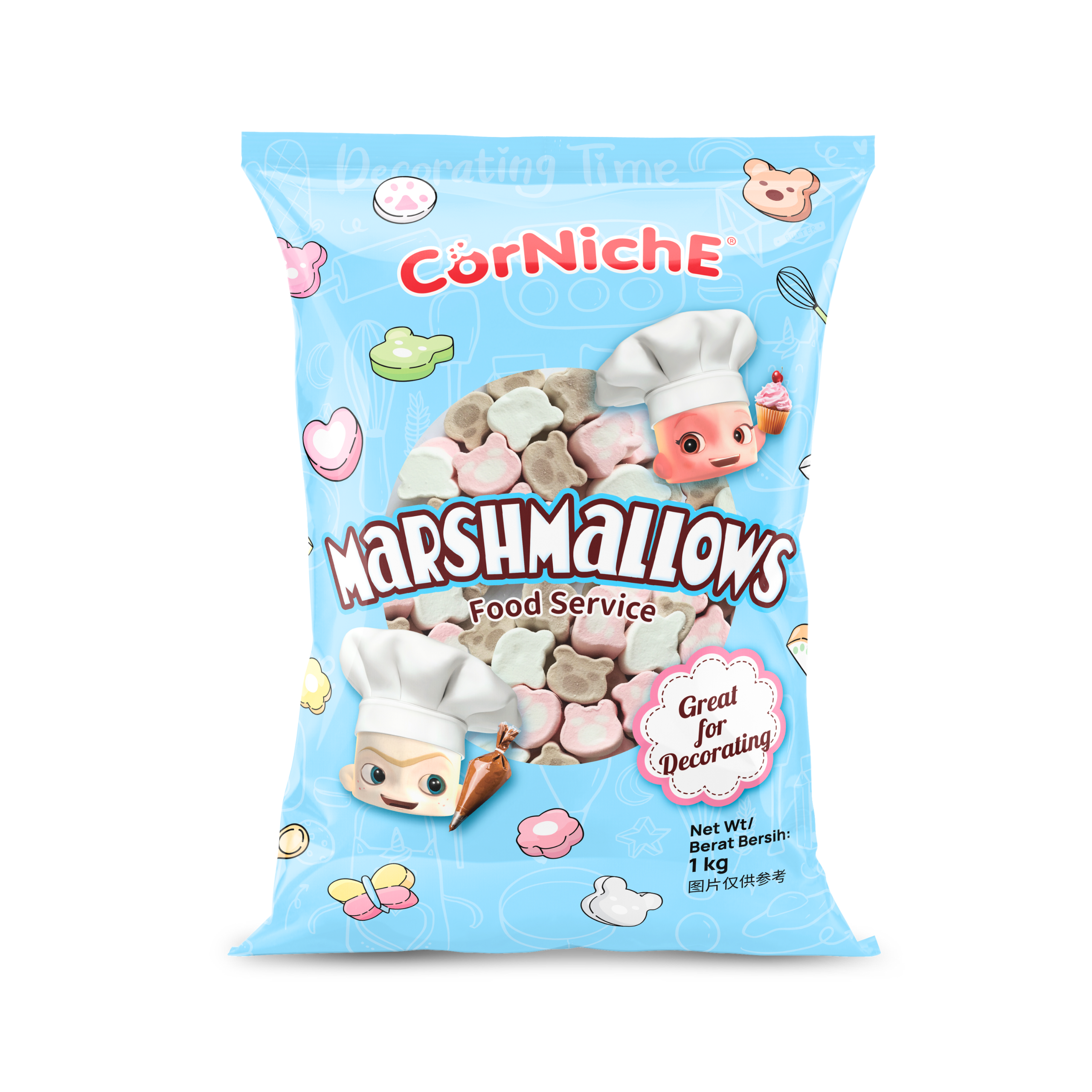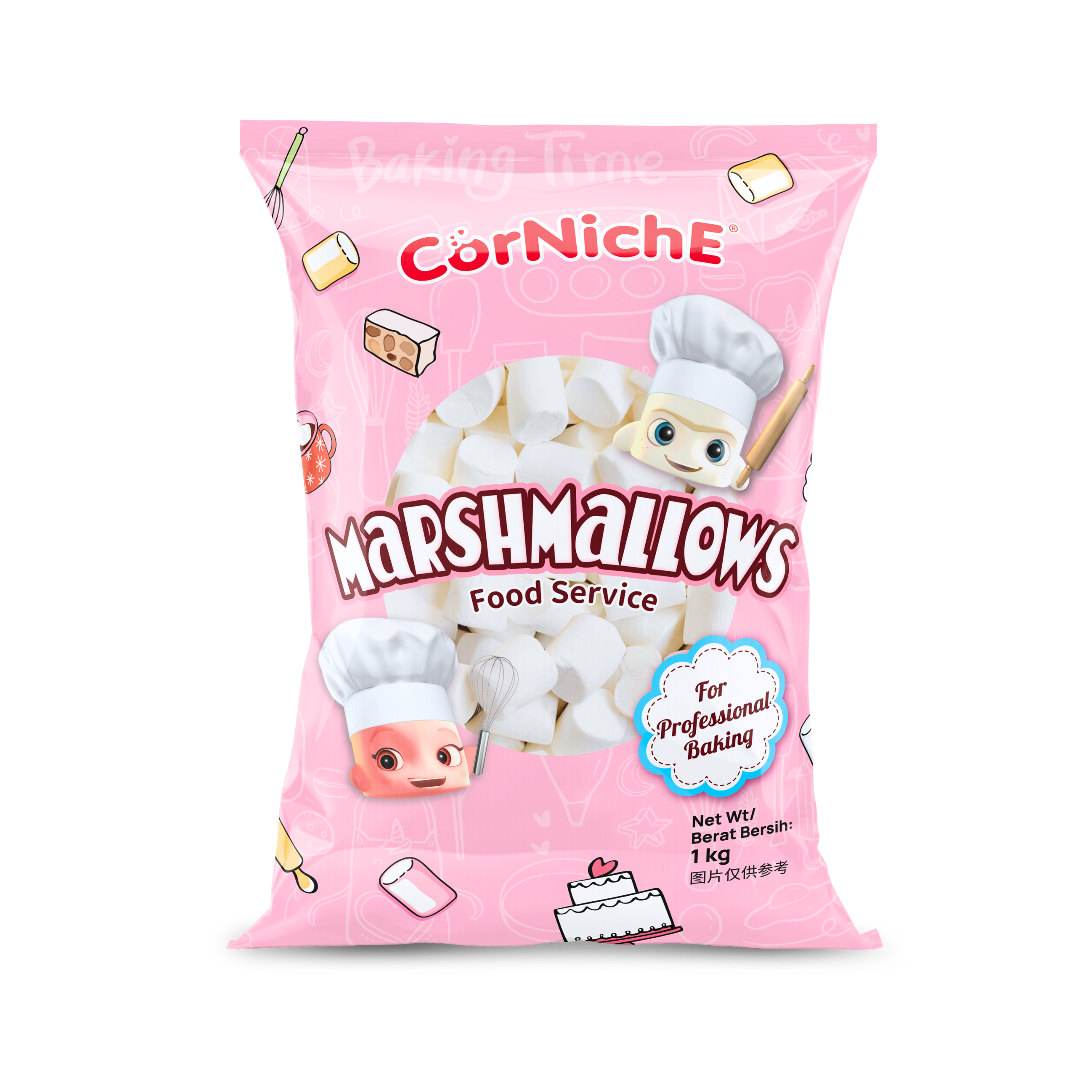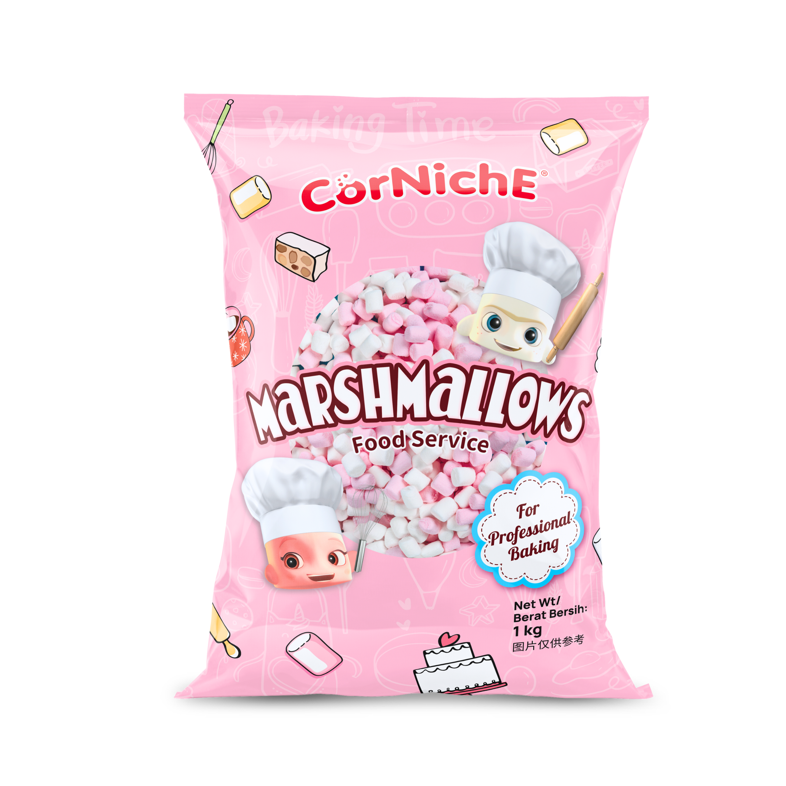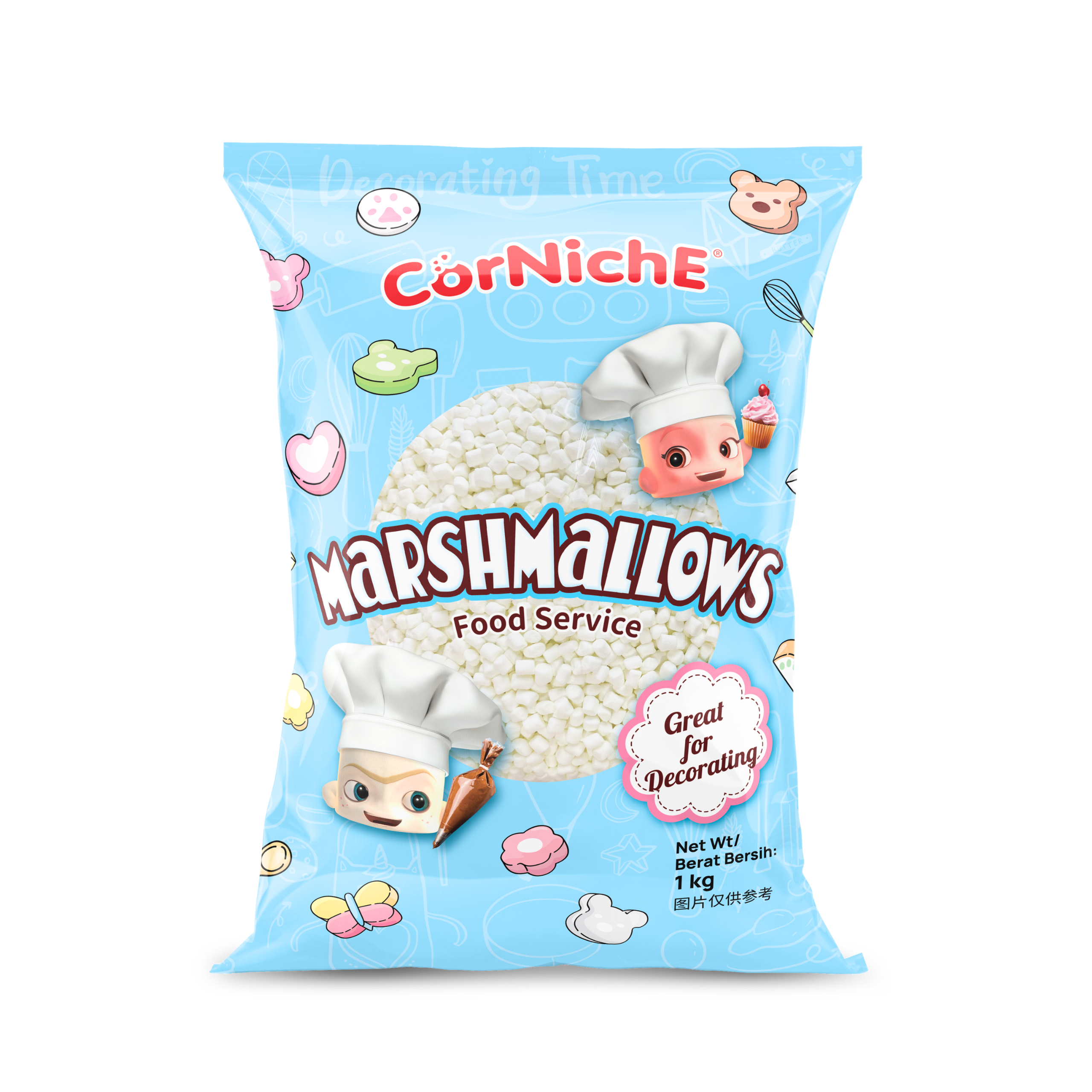 CorNichE marshmallows come in a variety of pack sizes and fun flavors—Vanilla, Chocolate, Mango, Strawberry, Apple, and even jelly-filled! Perfect for all ages, occasions, and snacking moments.